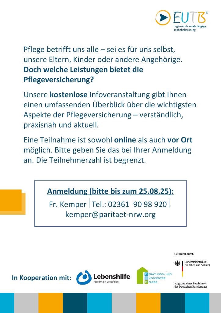 Info-Veranstaltung Leistungen der Pflegeversicherung für Jung und Alt